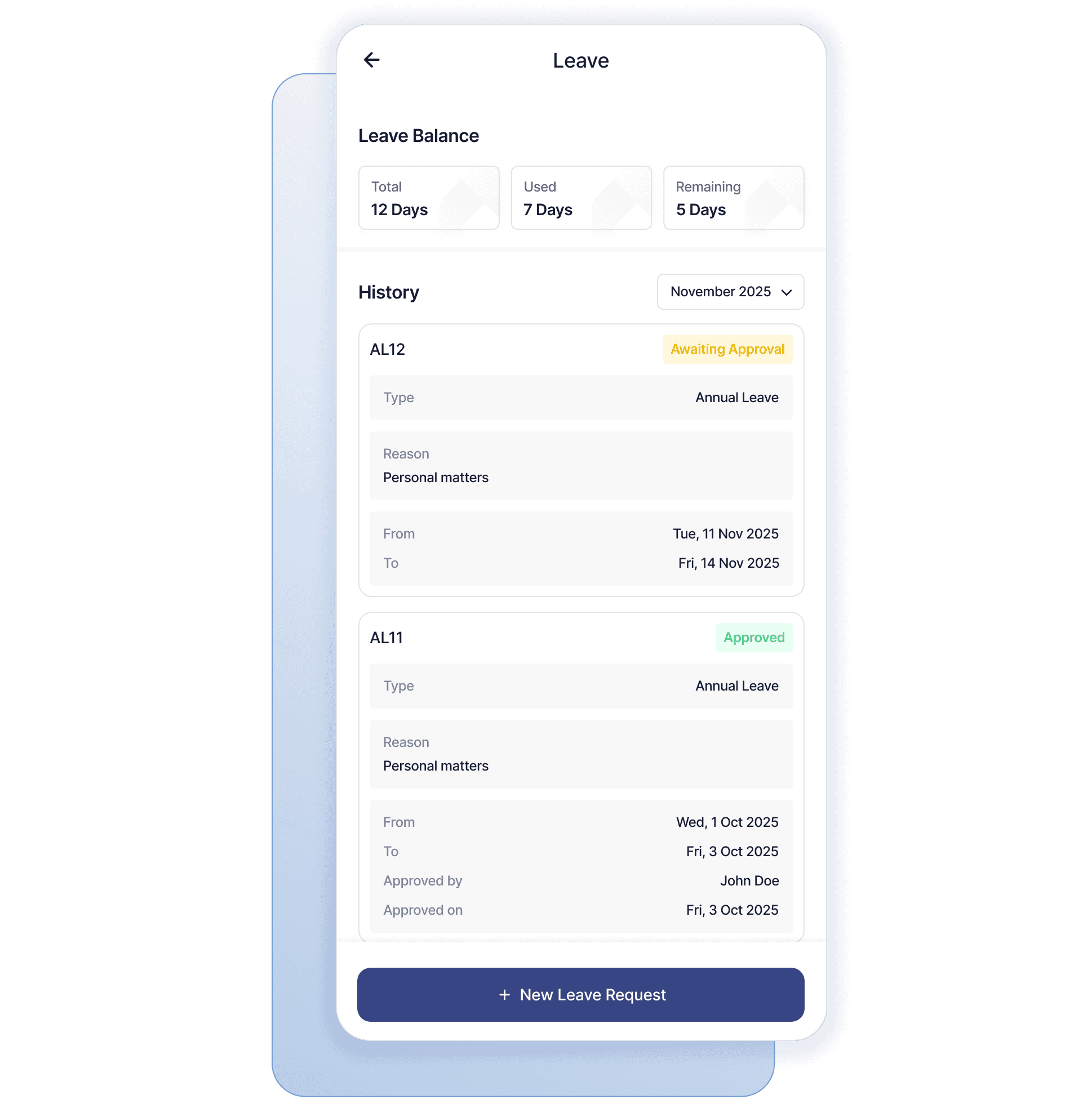 Karyawan bisa melihat sisa cuti dan riwayat penggunaannya langsung di aplikasi untuk mengurangi pertanyaan berulang ke HR dan meminimalkan salah paham.